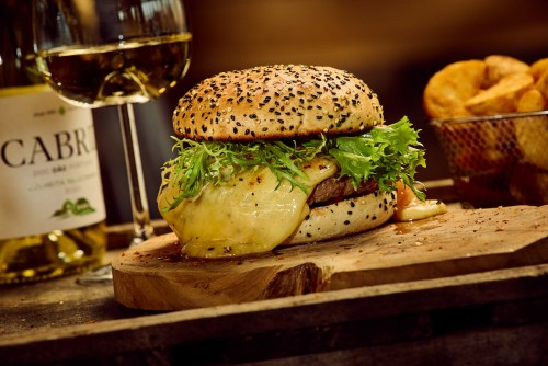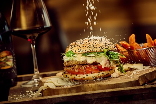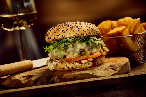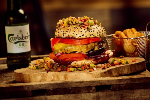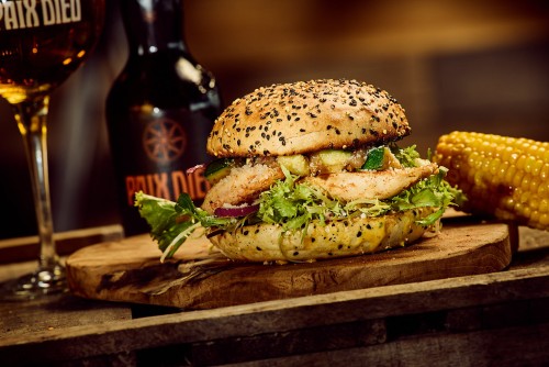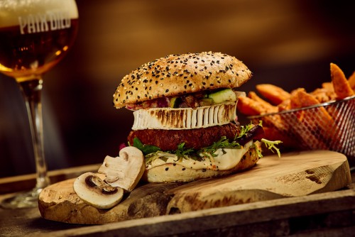 Burger de légumes, fromage de chèvre, légumes grillés, oignons rouges, cornichons, mayo.18,50€